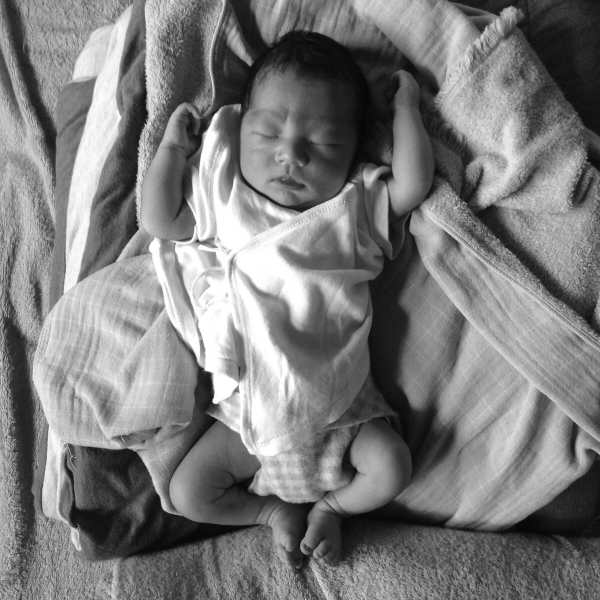とゆうのも、助産師さんが間に合わないこともあるくらいだったので、自分で産もうとゆう心構えとゆうか、意気込み?とゆうかがあったせいか,2日前には義理妹の結婚式に福岡(片道2時間)まで行くときも、車でも産めるように一応バスタオル持って行ってたくらい(ちなみに予定日3週前には子宮口3cmすでに開いてた)