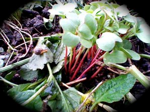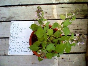 写真:左 ちいさな和みさんでもらったハーブ、根がにょろによろでてきました