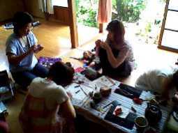 ほらみんな真剣!そしてめっちゃ集中して作ってました。途中 ベビちゃんをあやしながらおっぱいあげながら 自分のイメージを忠実に形にしてゆきます。