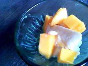 マンゴーの甘みと酸味 酵素ジュースの甘みがいい具合にマッチして 美味しい豆腐おやつになりました。
