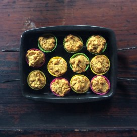 薪ストーブ内で米粉マフィン