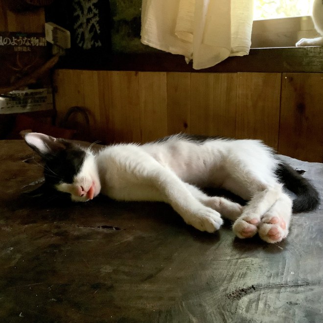 ねこ舌を出して温度調節