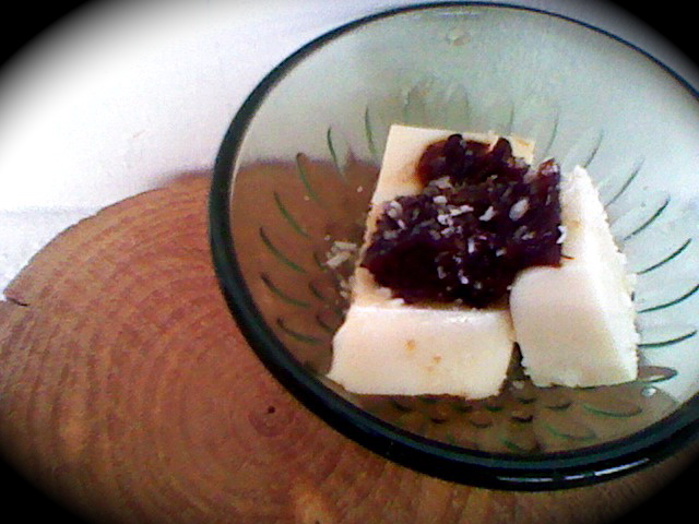 :ココナッツミルクと豆乳の寒天 プルーンの梅シロップ漬け: です