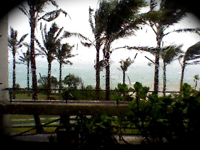 Sanbaちゃん結構強雨。ヤシがゴイゴイしなってます